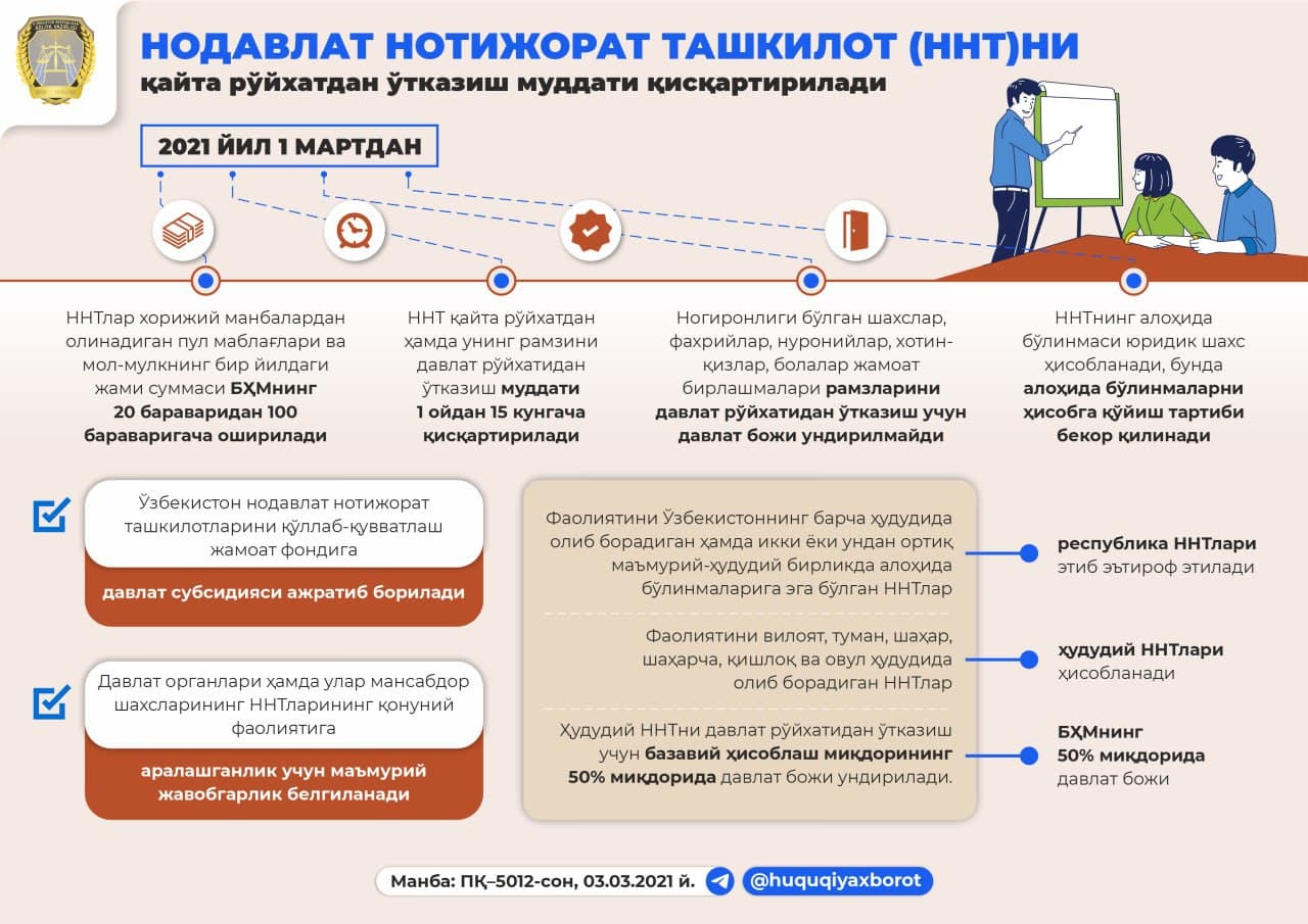 Нодавлат нотижорат ташкилотни қайта рўйхатдан ўтказиш муддати.