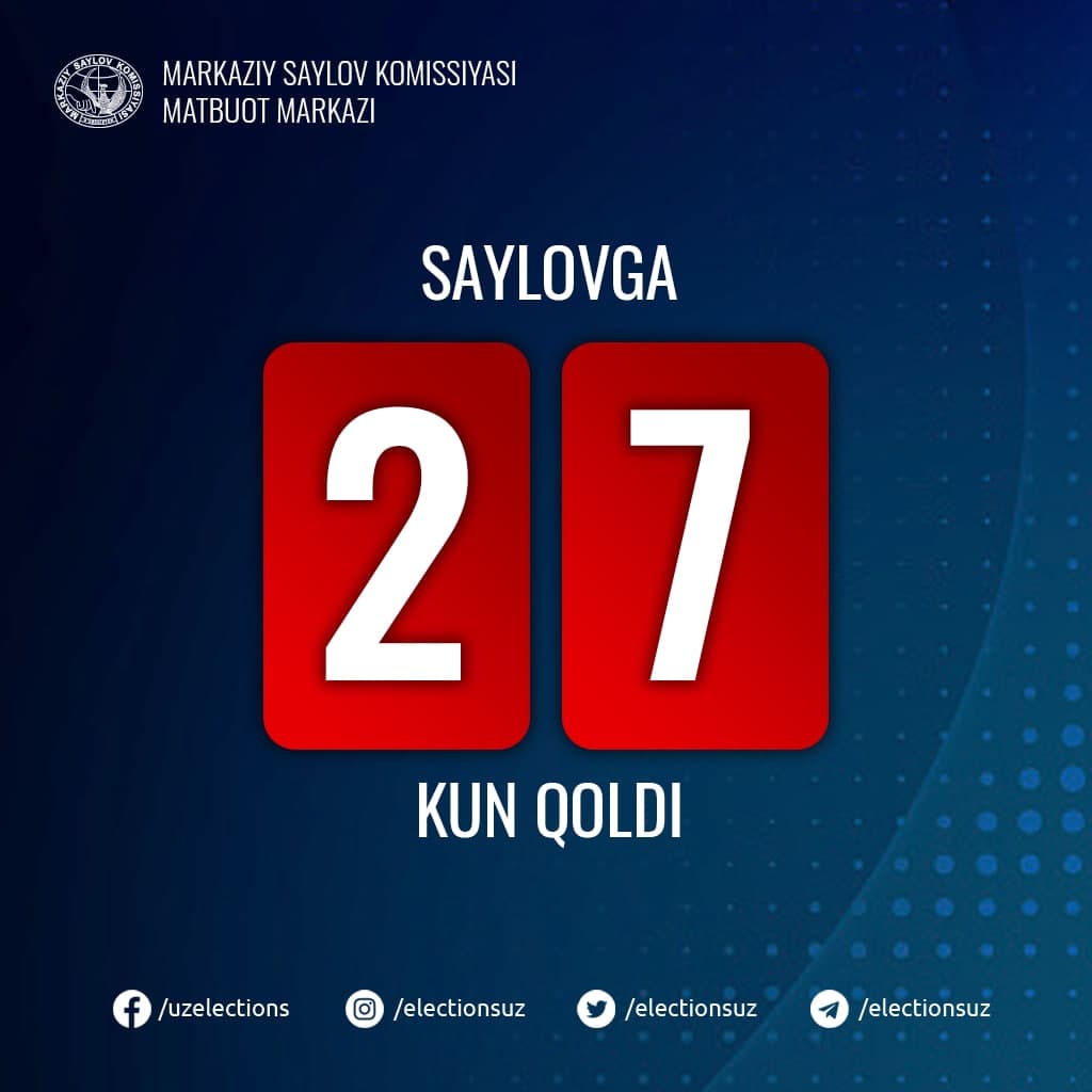 Ўзбекистон Республикаси Президенти сайловига 27 кун қолди.