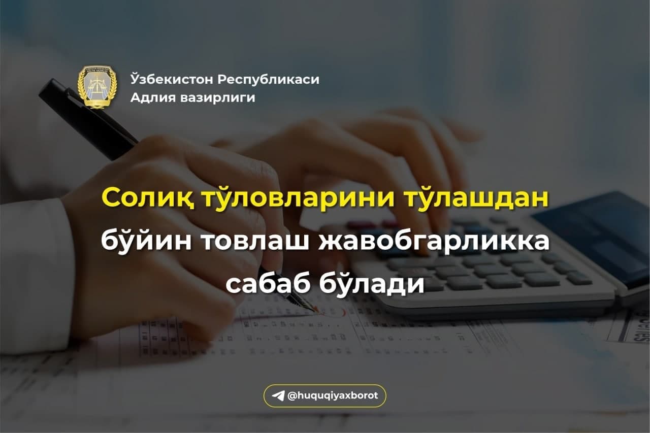 Қонунчиликка (https://lex.uz/docs/97664) кўра, солиқ олинадиган фойдани (даромадни) ёки бошқа объектларни қасддан яшириш (камайтириб кўрсатиш) ёхуд солиқлар ва бошқа мажбурий тўловлар тўлашдан қасддан бўйин товлаш: