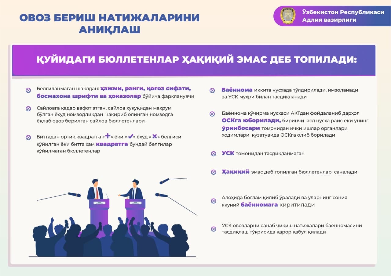 ҚУЙИДАГИ БЮЛЛЕТЕНЛАР ҲАҚИҚИЙ ЭМАС ДЕБ ТОПИЛАДИ