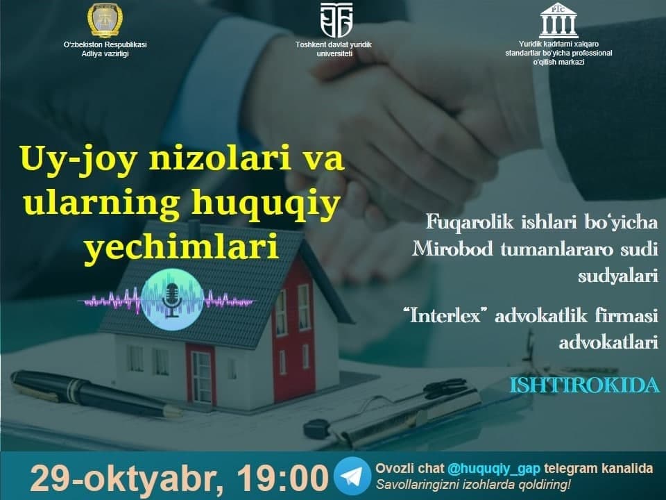 "Уй-жой низолари ва уларнинг ҳуқуқий ечимлари" мавзусида овозли чат ташкил этилади