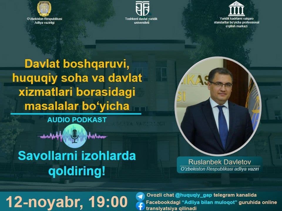 Ovozli chat 12-noyabr soat 19:00da @huquqiy_gap kanalida start oladi.
