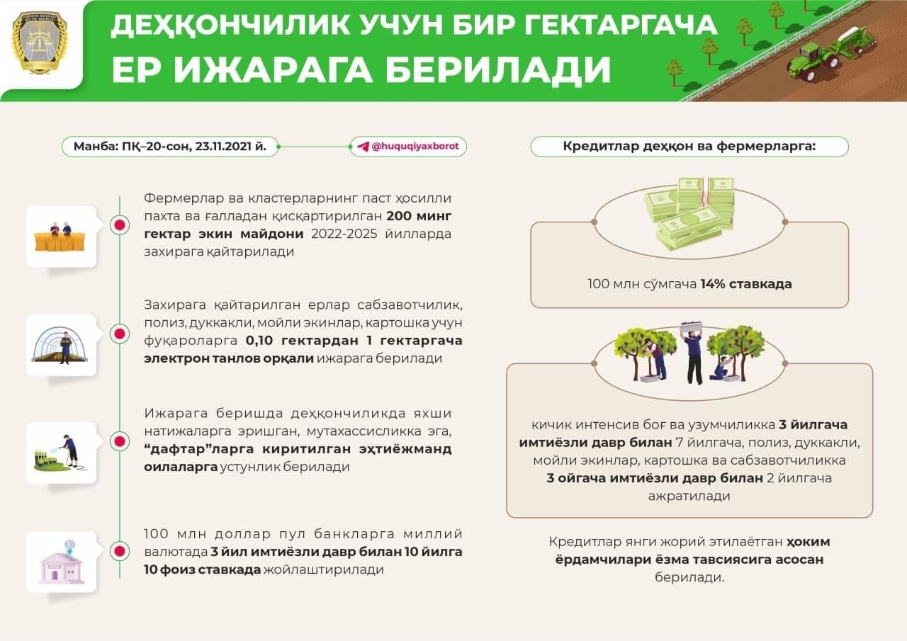 Dehqonchilik uchun bir gektargacha yer ijaraga beriladi