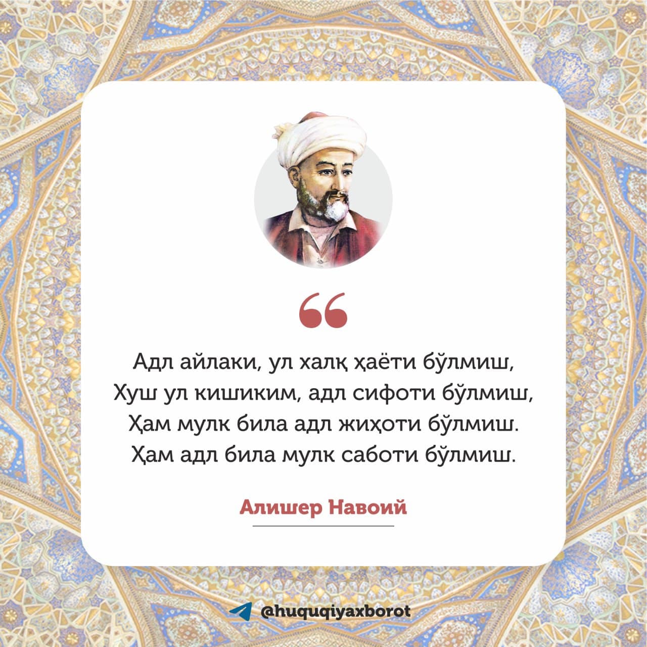 Buyuk shoir, mutafakkir, davlat va jamoat arbobi Alisher Navoiy tavallud topgan kun.