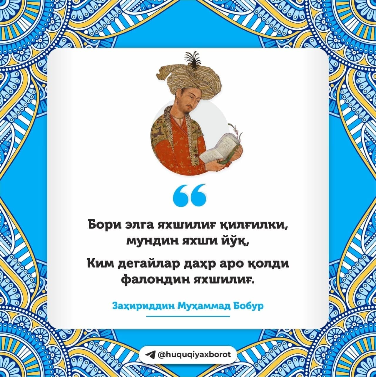 Буюк шоир, шоҳ, саркарда ва олим Заҳириддин Муҳаммад Бобур таваллуд топган кун.