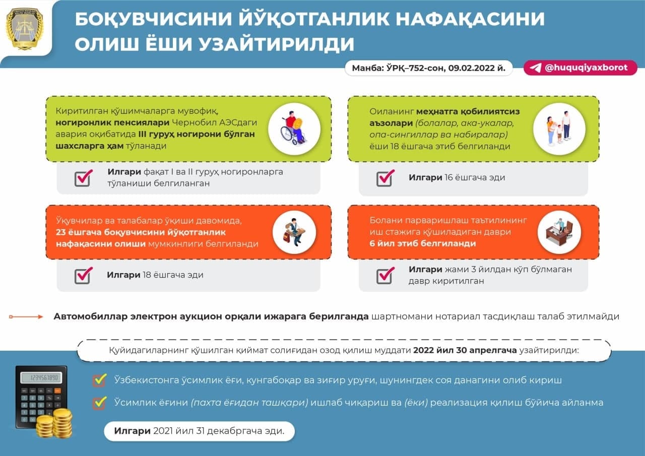 Boquvchisini yoʻqotganlik nafaqasini olish yoshi uzaytirildi