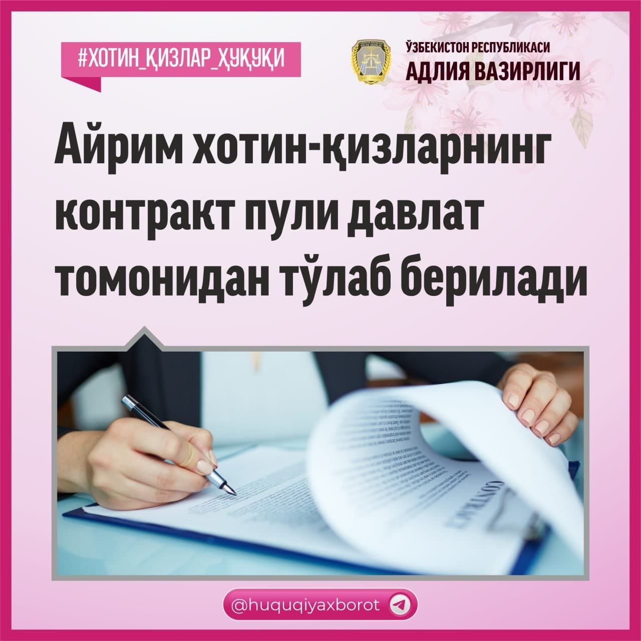 (https://lex.uz/docs/5640194) Moliyaviy ahvoli yaxshi OTMlar yuqoridagi toifaga kiruvchi 50 nafargacha xotin-qizlarni birinchi oʻquv yilida bepul oʻqitadi.