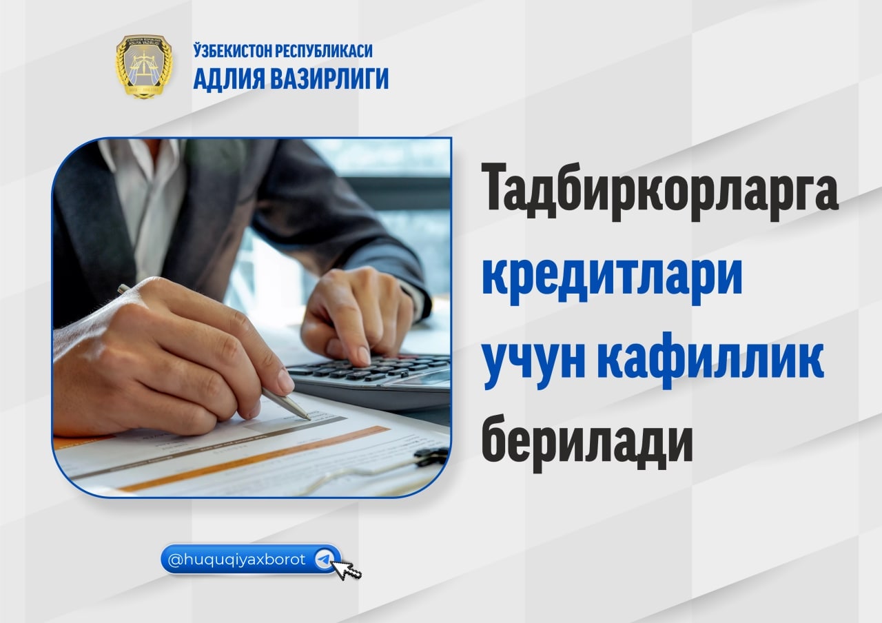 Tadbirkorlik faoliyatini qoʻllab-quvvatlash davlat jamgʻarmasi tomonidan tadbirkorlarga kreditlar boʻyicha kompensatsiya va kafilliklar kredit shartnomalari sonidan qatʼi nazar beriladi (https://lex.uz/docs/5382179).