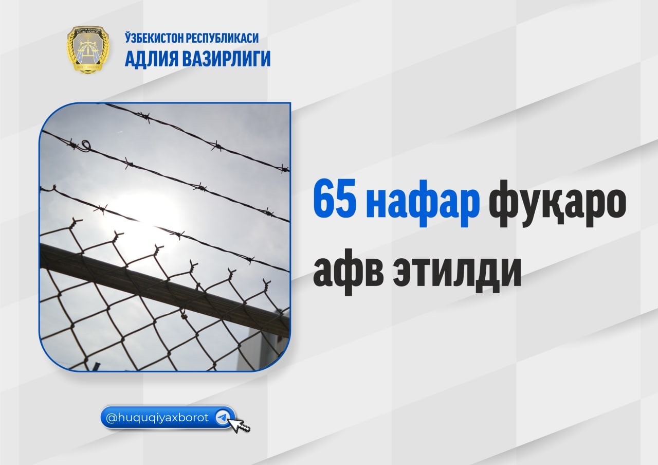Shunga koʻra, Ramazon hayiti arafasida 65 nafar fuqaro afv etildi.