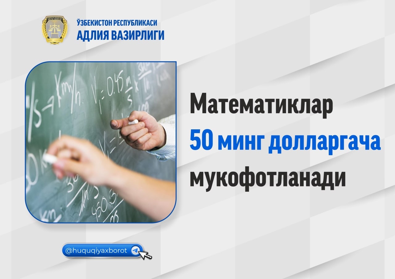 Matematika sohasida fundamental va amaliy ilmiy izlanishlar natijalariga koʻra amaliyotdagi muayyan muammoning yechimini taklif etgan olimlar Muhammad Al-Xorazmiy nomidagi xalqaro mukofot bilan yakka tartibda taqdirlanadi.