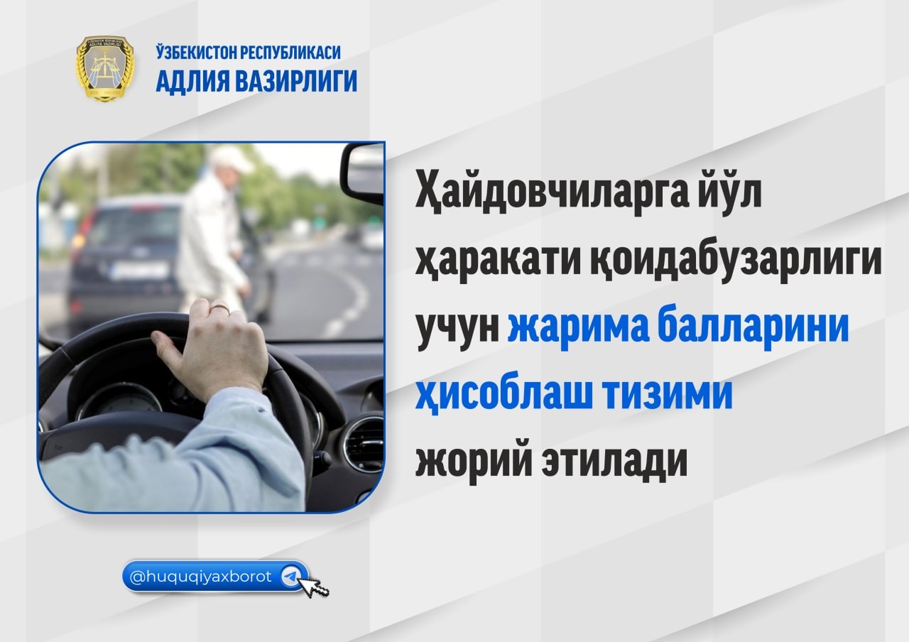 2022 yil 1 dekabrdan haydovchilarga yoʻl harakati qoidabuzarligi uchun jarima ballarini hisoblash tizimi joriy etiladi.