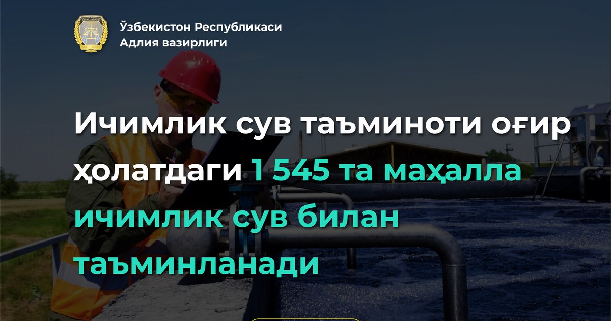 Ichimlik suv taʼminoti ogʻir holatdagi 1 545 ta mahalla ichimlik suv bilan taʼminlanadi
