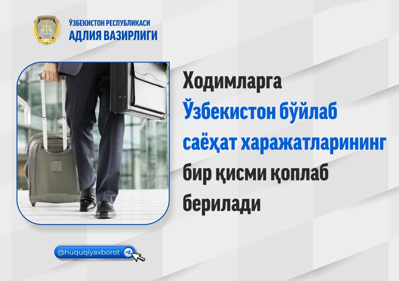 sayohat xarajatlarining bir qismi qoplab beriladi.
