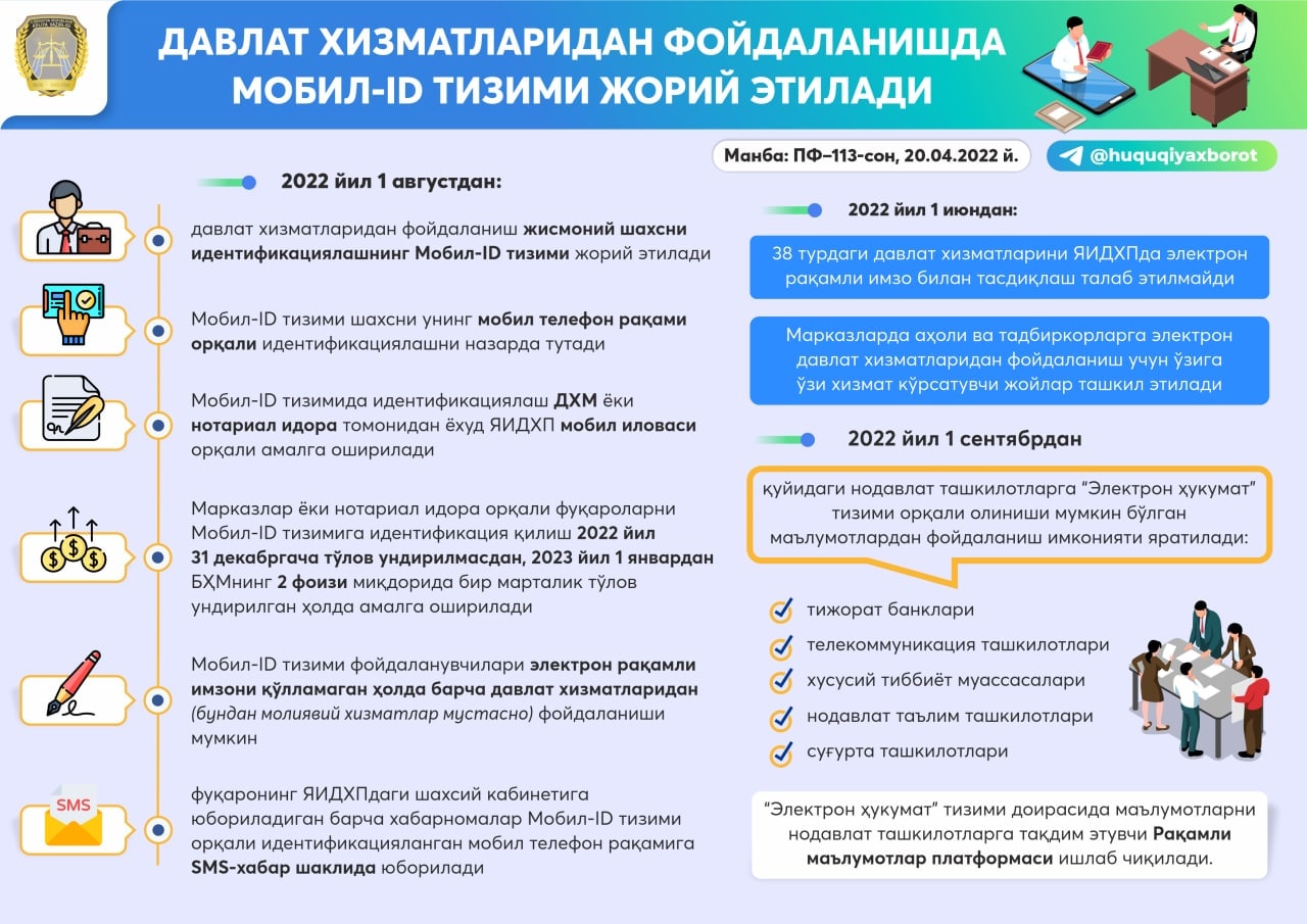Davlat xizmatlaridan foydalanishda Mobil-ID tizimi joriy etiladi