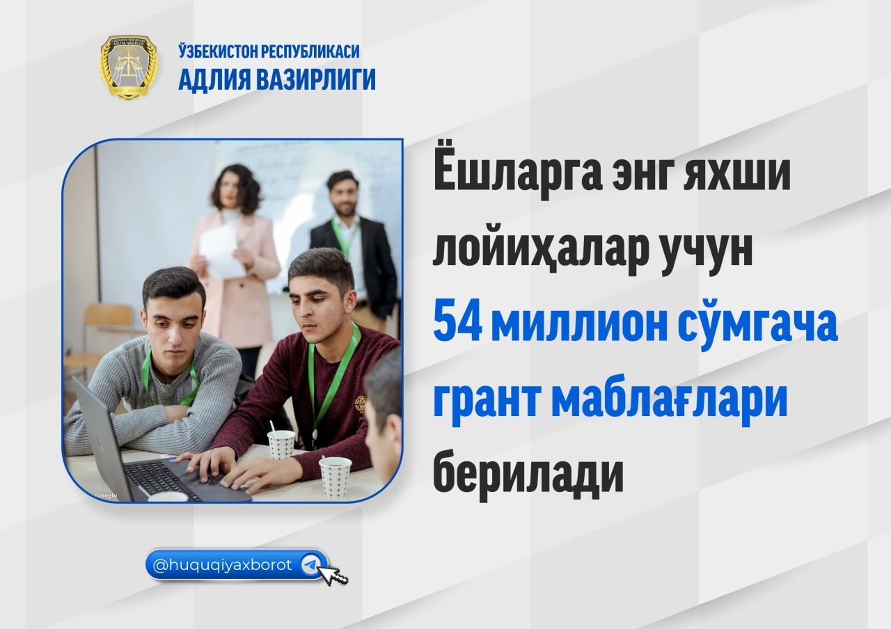 Eng yaxshi loyihalarning har biri uchun BHMning 200 baravarigacha grant mablagʻlari beriladi.