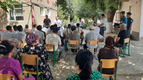Tadbirda joriy yilning oʻtgan 6 oy davomida mahallada sodir boʻlgan jinoyatlar haqida qisqacha maʼlumot berib, bularni oldini olish boʻyicha amalga oshirilgan ishlar haqida taʼkidlab oʻtildi.