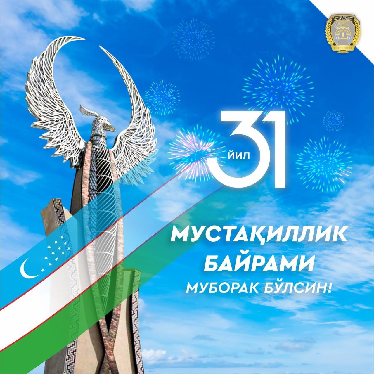 Sizlarni xalqimizning eng ulugʻ, eng aziz bayrami – Oʻzbekiston davlat mustaqilligining 31 yilligi bilan chin qalbdan muborakbod etamiz.